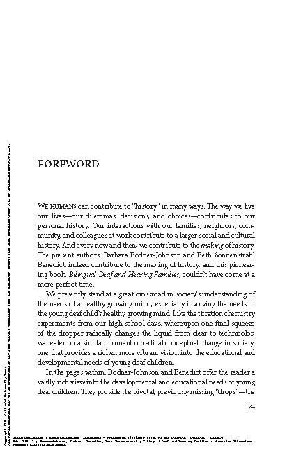 Forward to the book by Beth Benedict, Bilingual Deaf and Hearing Families, Narrative Interviews.