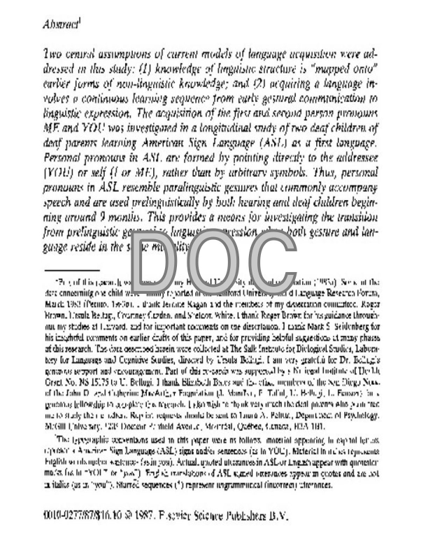 From Gesture to Symbol: The Relationship Between Form and Meaning in the Acquisition of Personal Pronouns in American Sign Language Petitto, L.A. (1986)