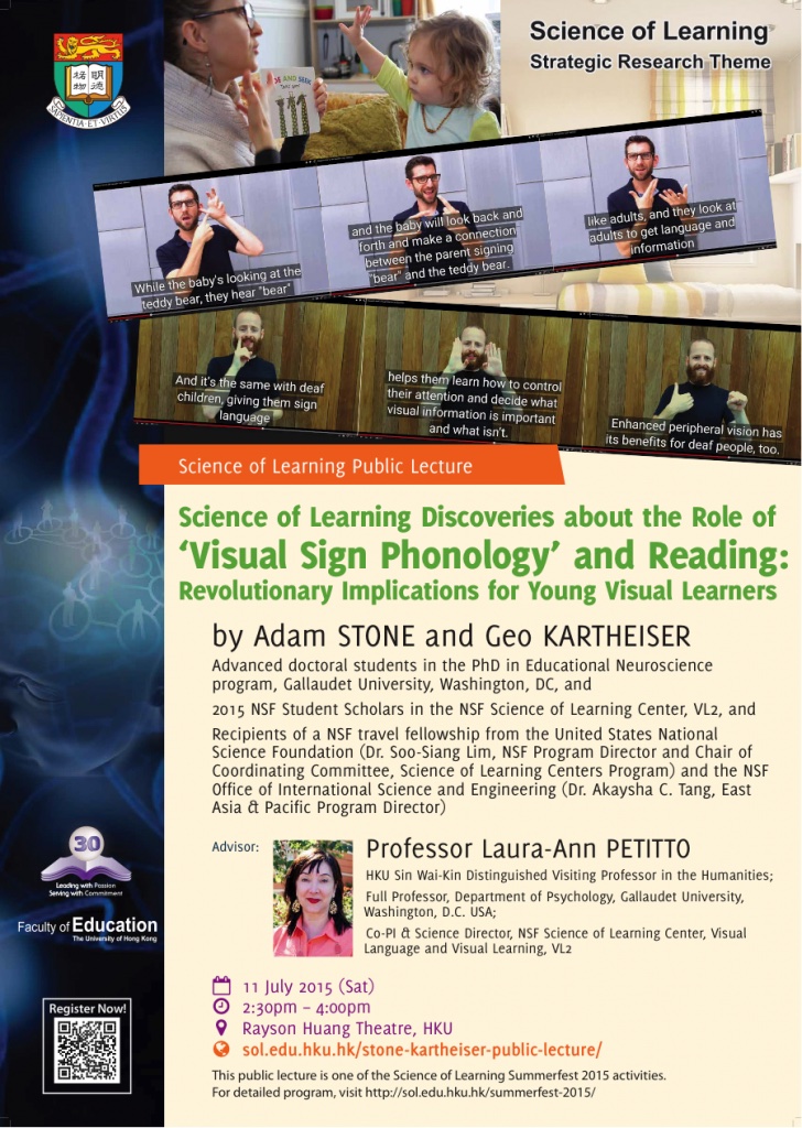 • Petitto and team have presented this work on VSP internationally. As one example, Dr. Petitto and students Adam Stone and Geo Kartheiser presented this work at the University of Hong Kong. To read more about this particular presentation click here.