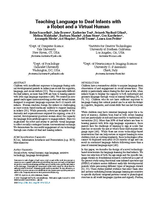 Unpublished study abstract: Study of categorical discrimination in 18 Rhesus Monkeys following from infants’ categorical discrimination of soundless phonetic units in Baker, Golinkoff, and Petitto (2006). Groh, J., Cohen, Y., and Petitto, L.A. (2007).