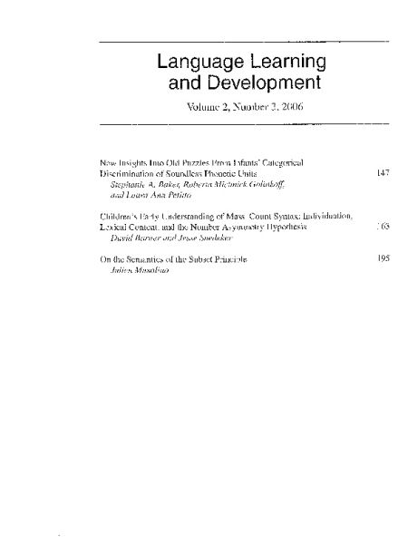 Age of first bilingual language exposure as a new window into bilingual reading development Kovelman, I., Baker, S.A., & Petitto, L.A. (2008).
