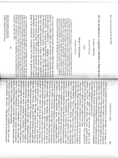 Can an ape create a sentence? Terrace, H.S., Petitto, L.A., Sanders, R.J., & Bever, T.G. (1979).