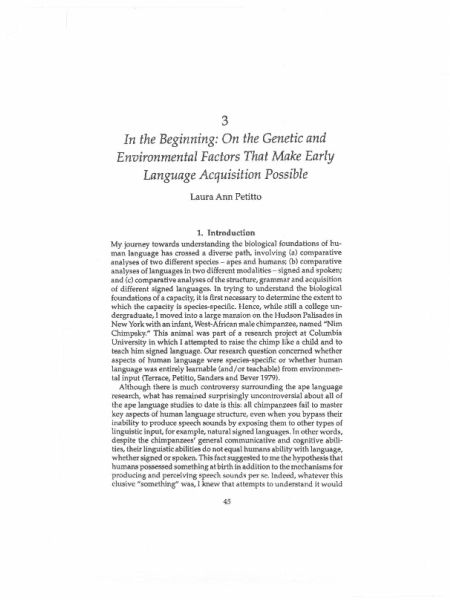 Spatial cognition and brain organization: Clues from the acquisition of a language in space Petitto, L. A. & Bellugi, U. (1988)